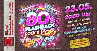 Mit der „80’s Flashback“-Party erwartet Besucherinnen und Besucher ein mitreißender Abend voller musikalischer Erinnerungen & ikonischer Videoclips. DJ & VJ André präsentiert die größten Rock- und Pop-Hits der 1980er Jahre – live gemixt mit originalen und teils aufwändig überarbeiteten Musikvideos, die das Jahrzehnt geprägt haben.